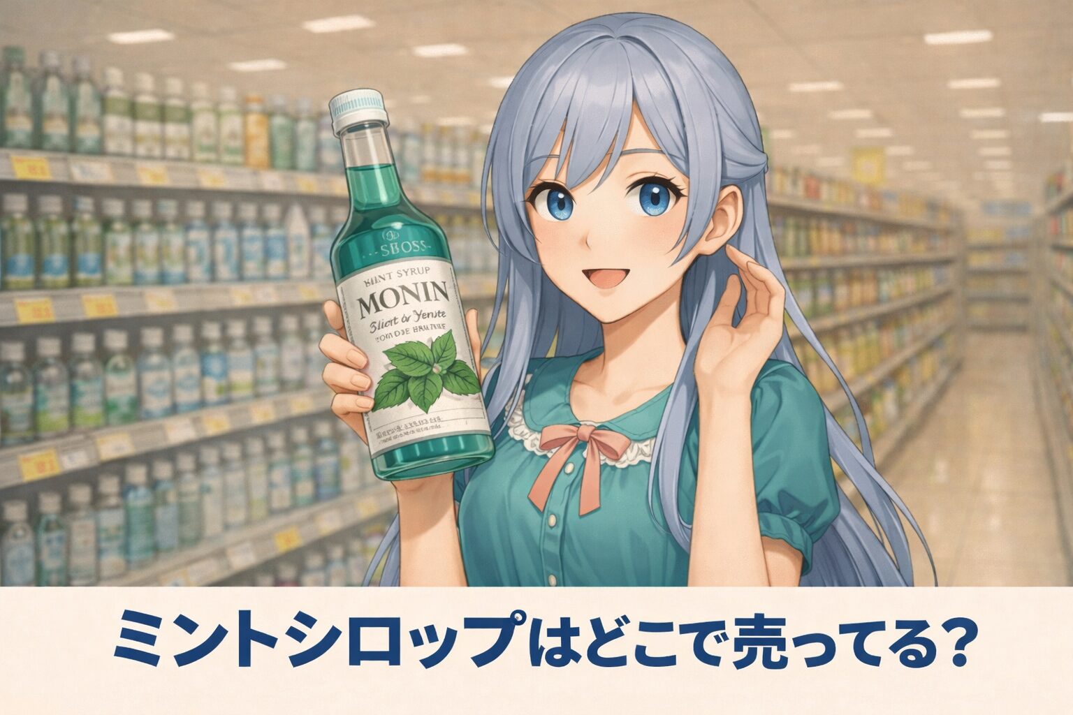 実は、ミントシロップは一般的な飲料コーナーではなく、「カクテル材料」や「製菓コーナー」に並んでいることが多いため、見つけづらいのです。